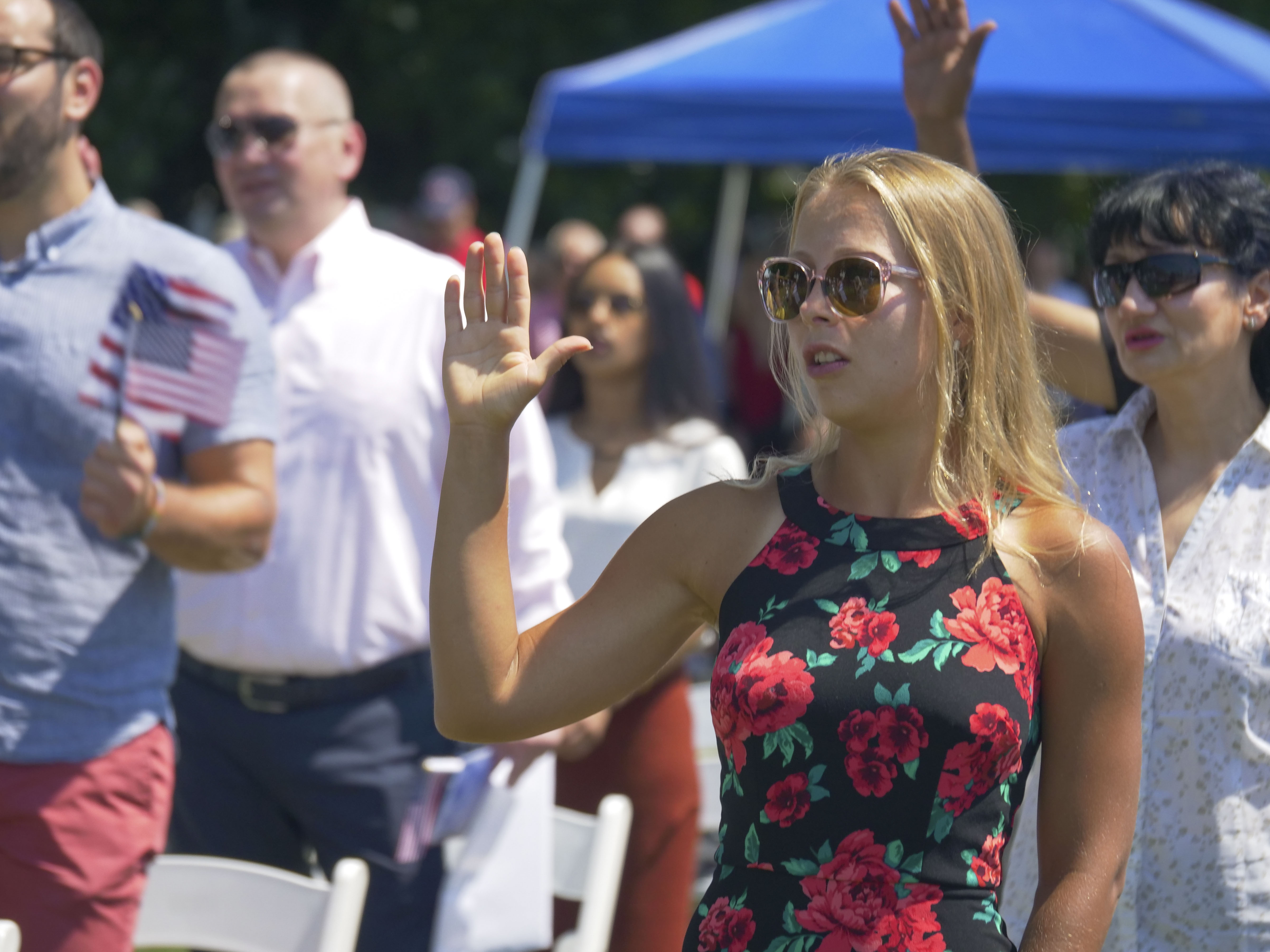 Personas prestan el Juramento de Lealtad para convertirse en ciudadanos estadounidenses en Mount Vernon